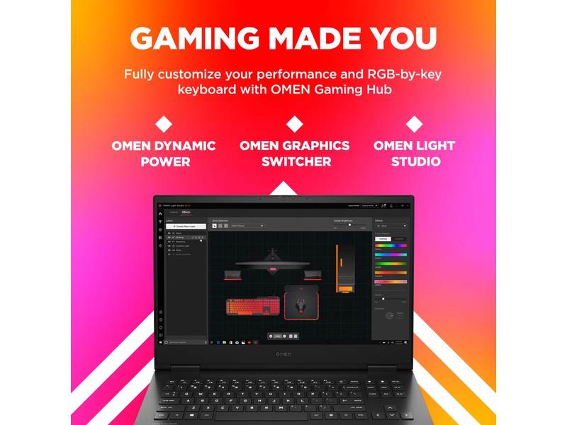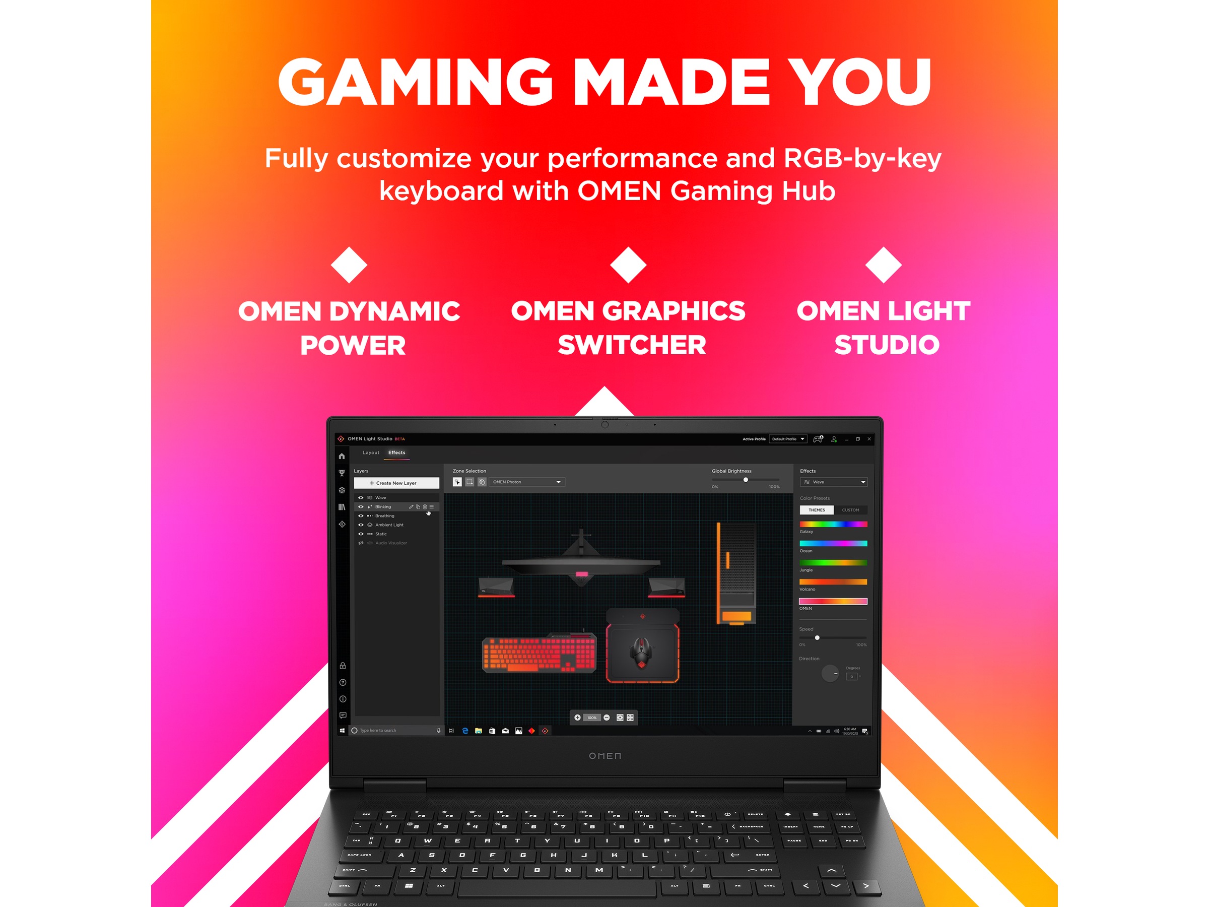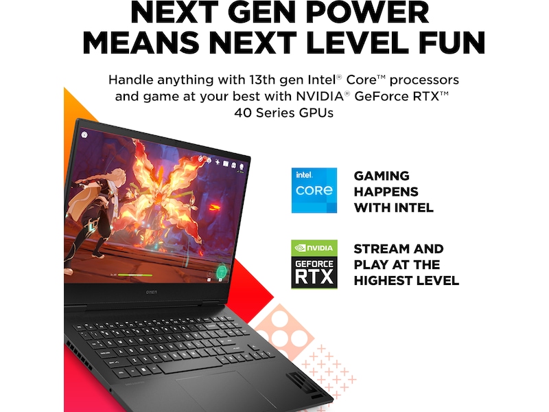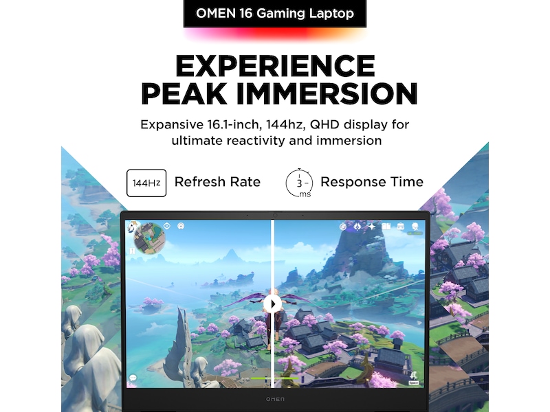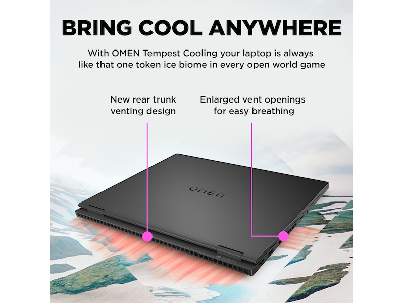 OMEN 16 tum Gaming Laptop ärredo – var du än befinner dig. Upplev prestandan hos en stationär dator med en 13:e generationens Intel® Core™-processor och ett modernt NVIDIA®-grafikkort där båda kontrolleras av vårförbättrade interna kylning. Skärmen är dessutom lika imponerande med hög upplösning, jämn bildfrekvens och antireflexbehandling.