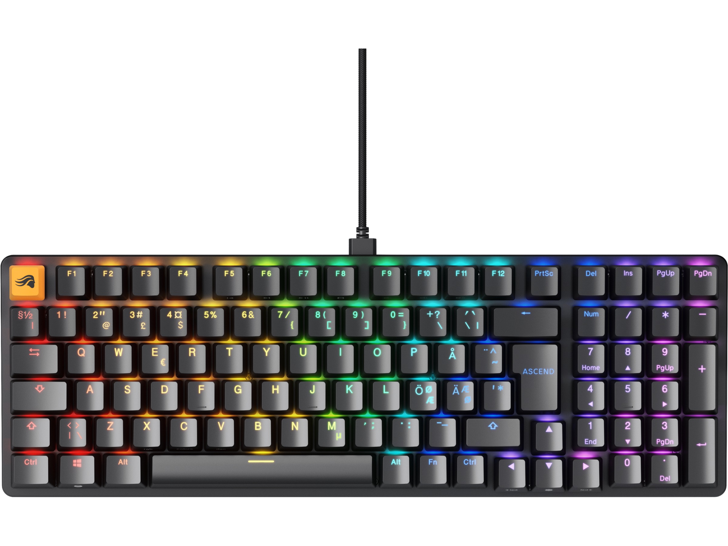 Sidoljus flankerar GMMK 2:s kropp och ger en subtil glans på ditt skrivbord. RGB-ljuset de producerar är fint spritt för en konsekvent glöd fri från märkbara hotspots.