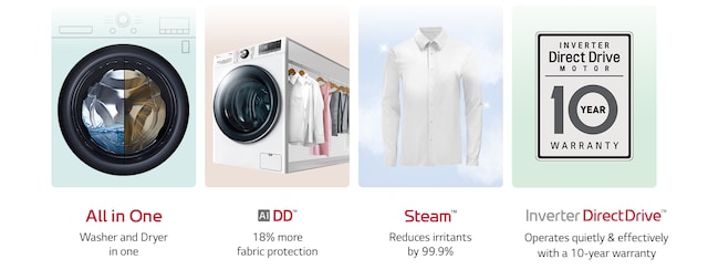 Med en kombinerad tvättmaskin/torktumlare från LG sparar du utrymme i ditt hem och har mer tid för familj och vänner.