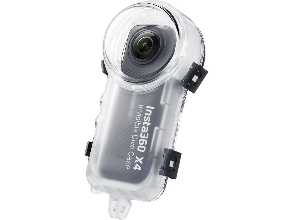 Insta360 X4 Invisible Dive Case Komplett osynlig design som möjliggör kompletta 360°-bilder under vattnet. Sömlösa undervattenssömmar. Vattentät till 164 fot (50m). Kristallklar 360° video. Använd med Invisible Selfie Stick för fantastiska tredjepersonsvyer.