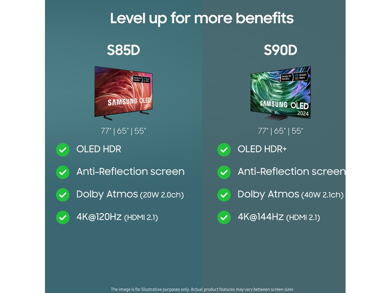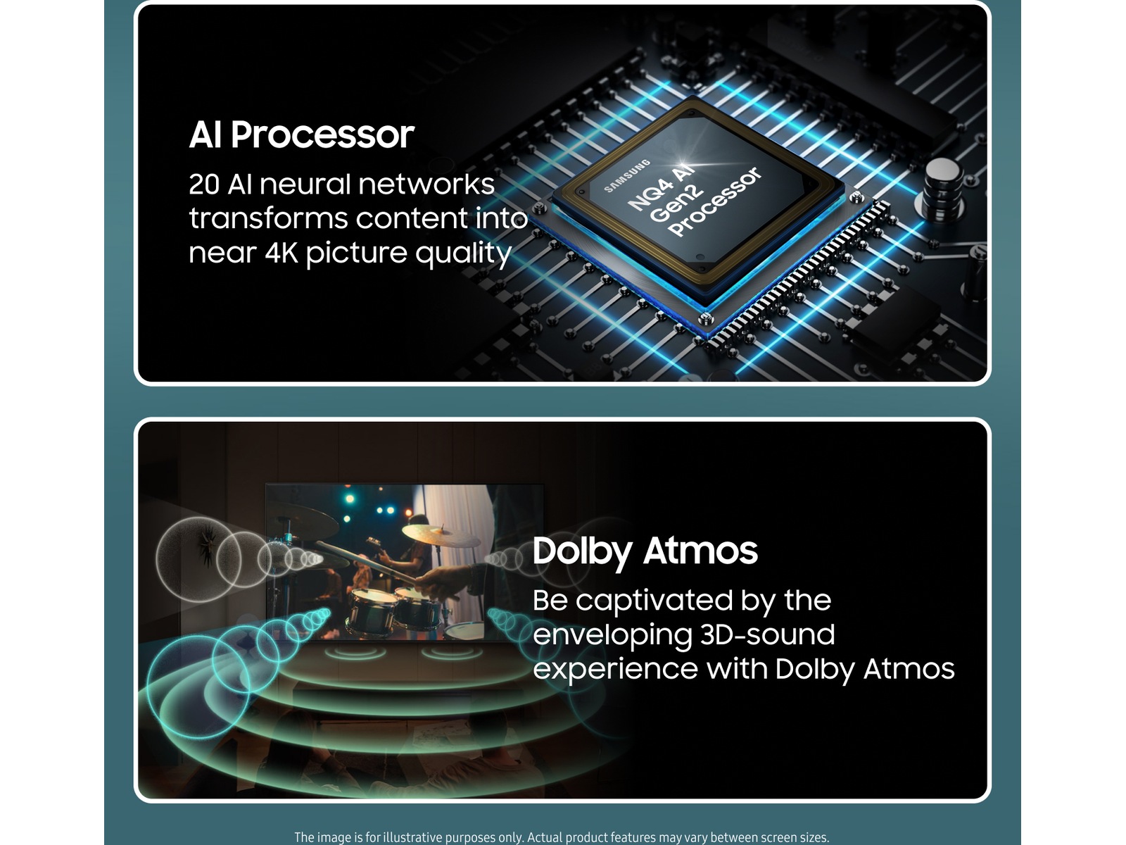 Njut av skärmens underbara dynamik med den AI-drivna processorn. Dolby Atmos™ levererar ett fylligt 3D-ljud, speciellt om det kombineras med en Q-Symphony-aktiverad soundbar.