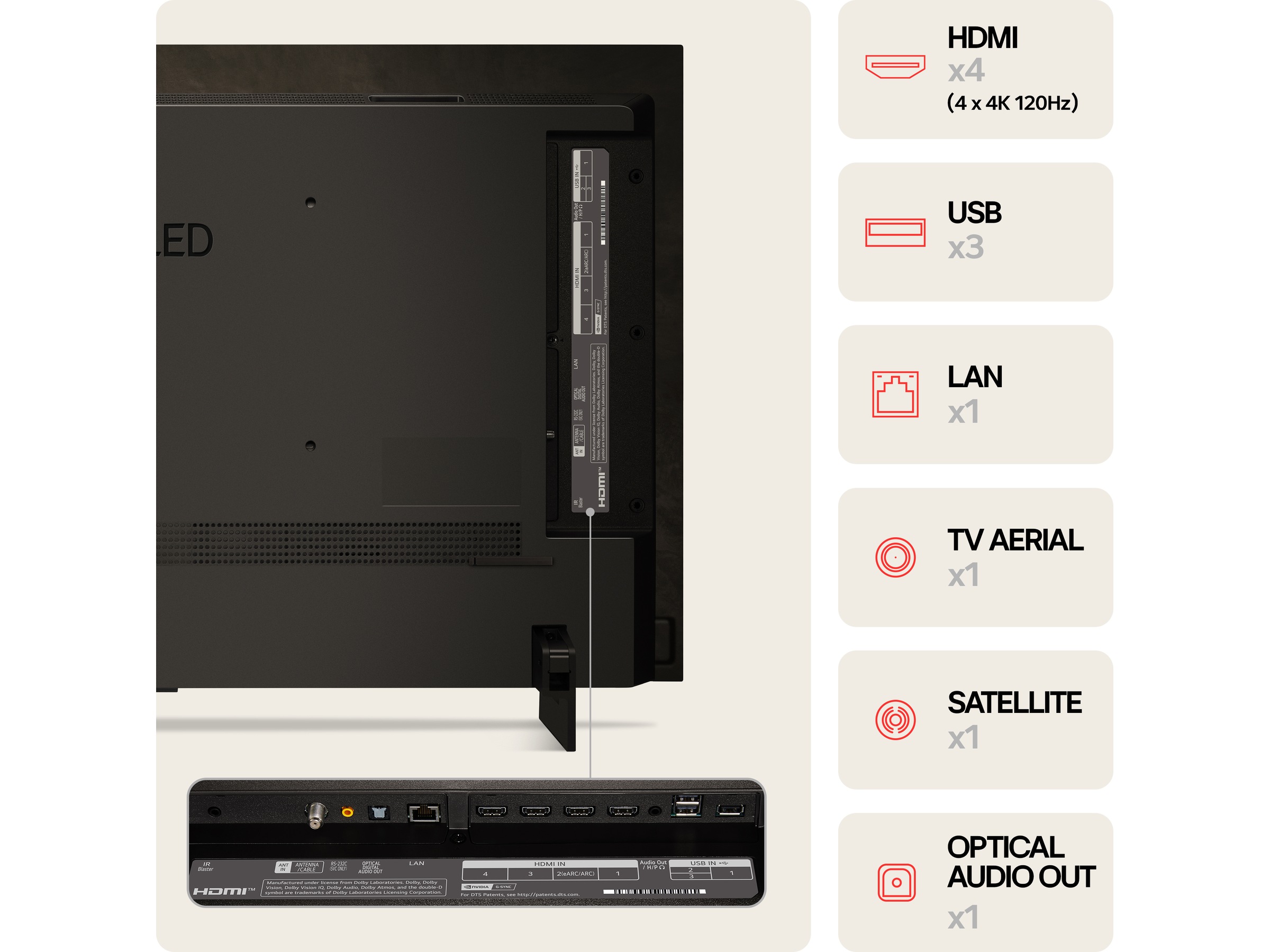 Digital ljudutgång (optisk), LAN, 3 x USB 2.0, 4 x HDMI