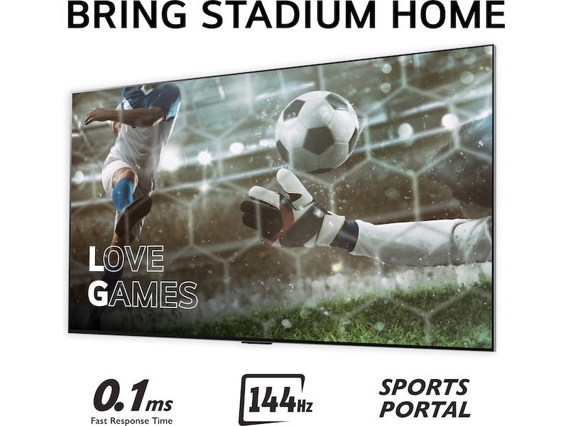 | Egenskaper | Freesync, Intelligent röstigenkänning, 4K High Frame Rate (HFR), AI Brightness Control, AI-genreval, G-SYNC Compatible, Familjeinställningar, Stöd för USB-webbkamera, Alltid redo, Apple AirPlay 2-stöd, Game Dashboard |