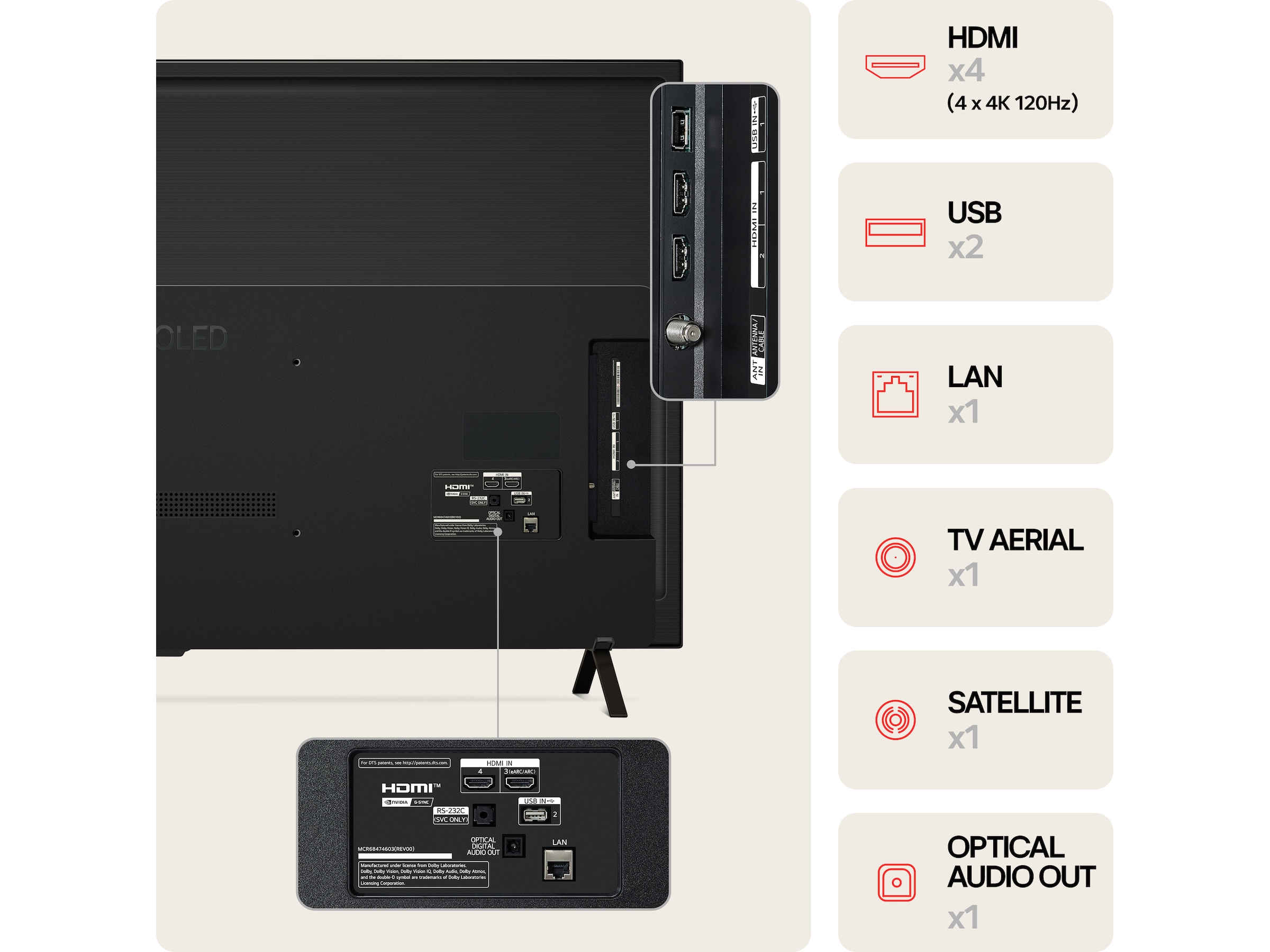 Alltid redo, Cloud Gaming, AI Picture Wizard, AI Brightness Control, 4K High Frame Rate (HFR), Apple AirPlay 2-stöd, Freesync, Stöd för USB-webbkamera, G-SYNC Compatible, Game Dashboard, AI Concierge, AI-genreval, Familjeinställningar