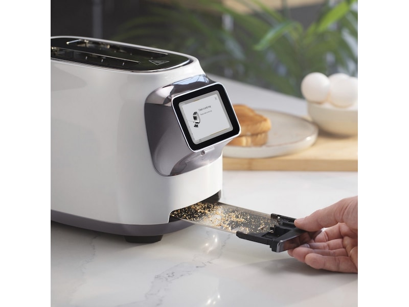 Tineco introducerar en snygg, vit brödrost med en 4-tums LCD-skärm. Denna moderna brödrost ger användarna möjlighet att anpassa rostningen i varje kammare individuellt, så att hela familjen kan njuta av brödskivorna precis som de vill ha dem.