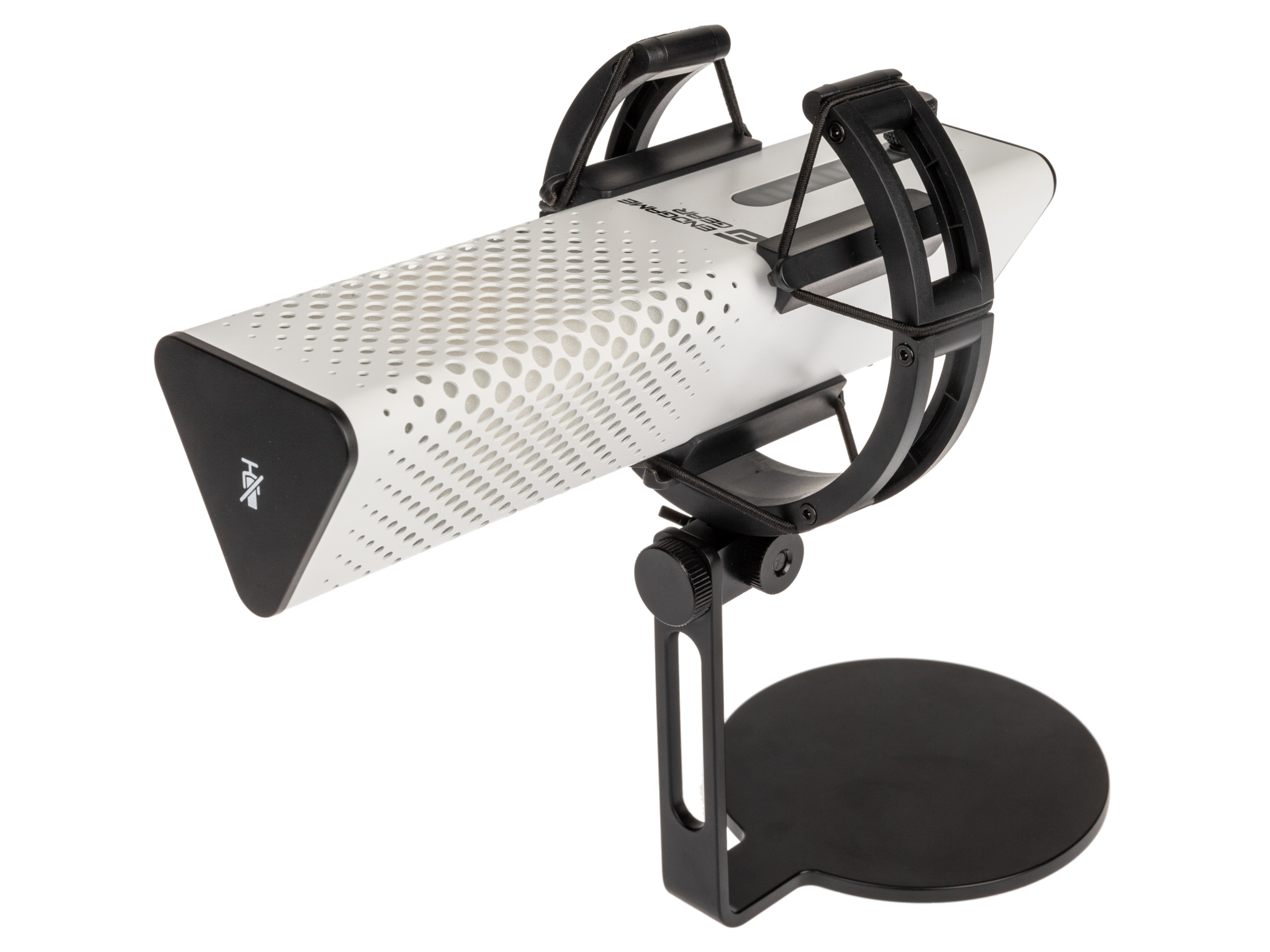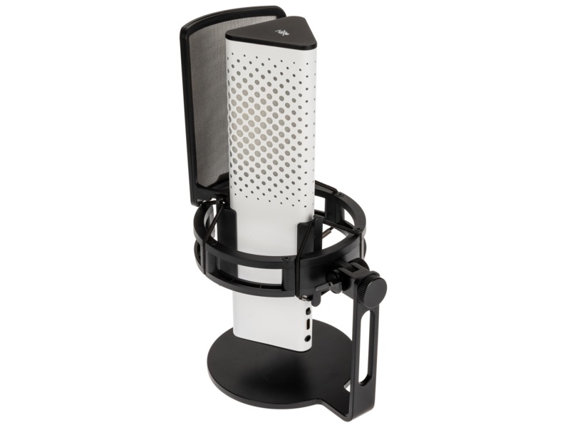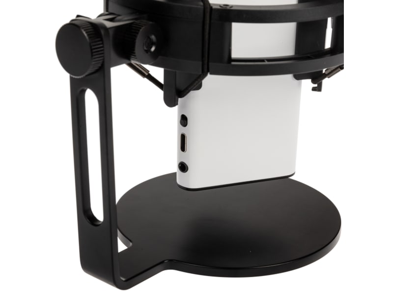 Ett metallstativ ingår också som du kan använda hemma eller på språng. Vill du hellre lägga på mikrofonen? Inga problem. Den integrerade 3/8 tums gängan låter dig montera den på vilket konventionellt stativ som helst.