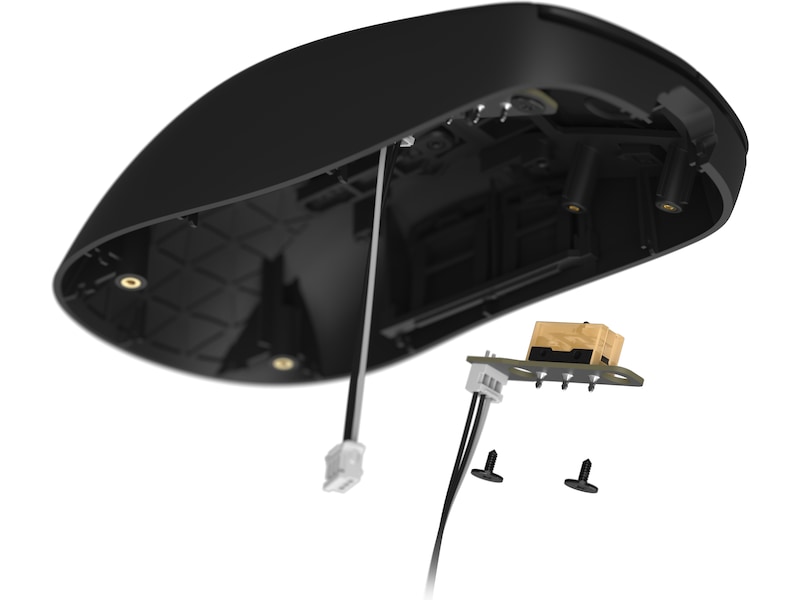 Vad gör ett musklick bra? Ställ denna fråga till 10 personer och få 11 olika svar. Alla har sina egna preferenser och ibland vill vi bara använda det som ingen annan använder. Även om Kailh GX är en switch med en mycket bra kombination av kort intern rörelse, skarp aktiveringspunkt och spammbarhet, kanske du ändå vill prova din favoritswitch. Alla OP1-möss har en bytbar huvudknappsbrytardesign med åtkomliga skruvar på bottenplattan. Detta möjliggör enkel anpassning, vilket ger dig den perfekta klickkänslan skräddarsydd efter dina önskemål. Välj från en mängd olika switchpaket som erbjuder olika klickupplevelser och följ vår enkla steg-för-steg-guide för att byta ut switcharna. Med det universella brytarpaketet kan du använda vilken mekanisk strömbrytare du kan hitta, utan lödning.
