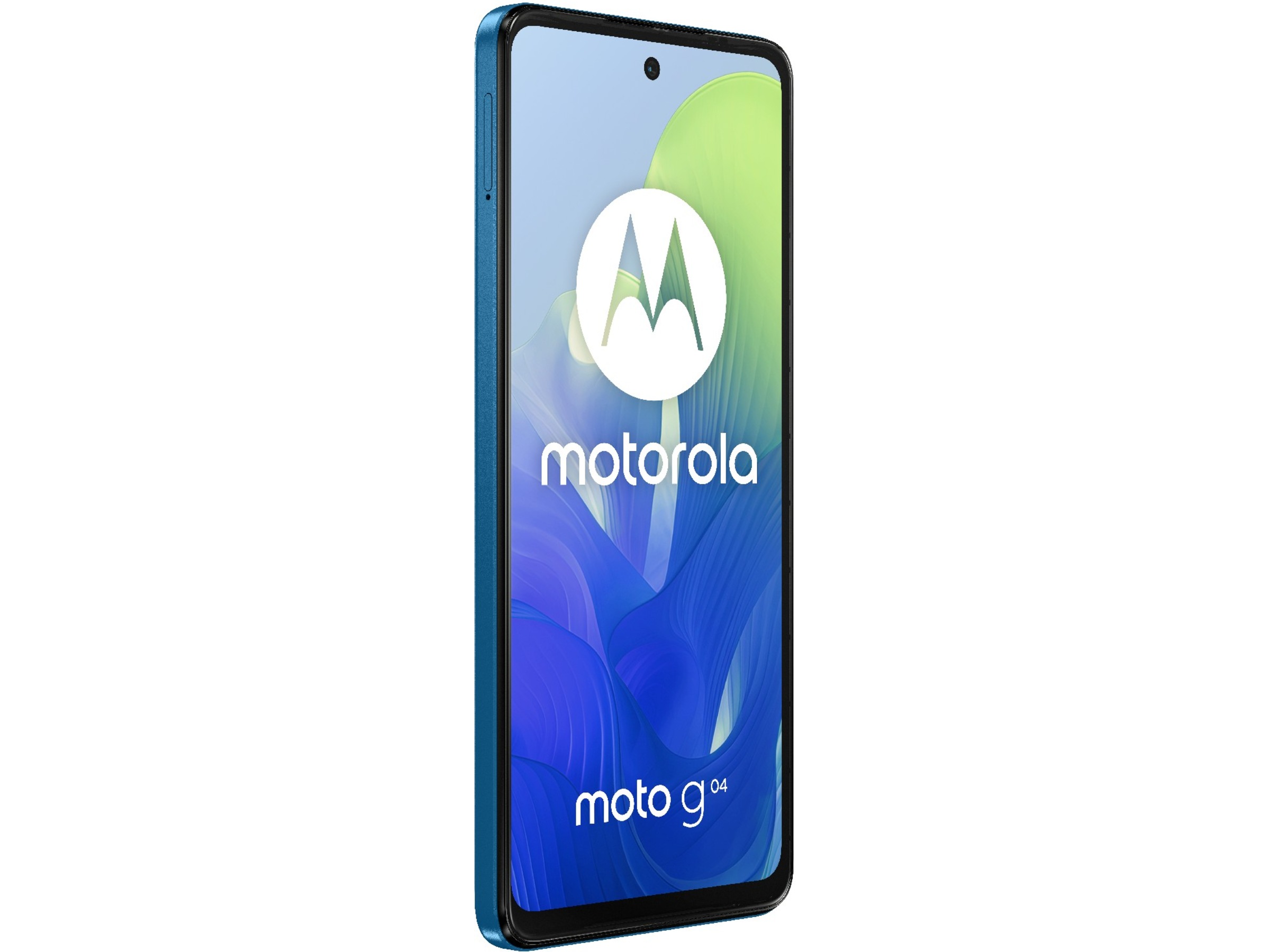 Den underhållning du längtar efter. Den stil du önskar. Detta är moto g04. Smal och elegant, den är gjord av premiummaterial och designad för att se fantastisk ut. Med vackra detaljer och fyra roliga färger att välja mellan finns det mycket att älska. Njut av program och filmer på en snabbuppfriskande, hackfri 6,56" 90Hz (2)-skärm med hög ljusstyrka-läge – uppbackad av Dolby Atmos® (3)-ljud. Ta bilder som är redo för sociala medier med en 16 MP AI-driven kamera. Använd RAM Boost (3) för att förvandla lagring till virtuellt RAM för smidigare multitasking. Lås upp med en blick eller en enkel beröring. Och fortsätt arbeta eller spela längre på bara en enda laddning med 5000mAh-batteriet. moto g04 är gjord för att röra dig.