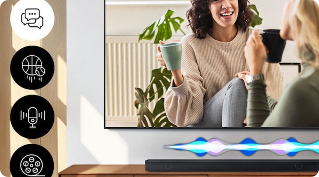 TV-högtalarna samverkar med Soundbar för att göra ljudupplevelsen bättre.*