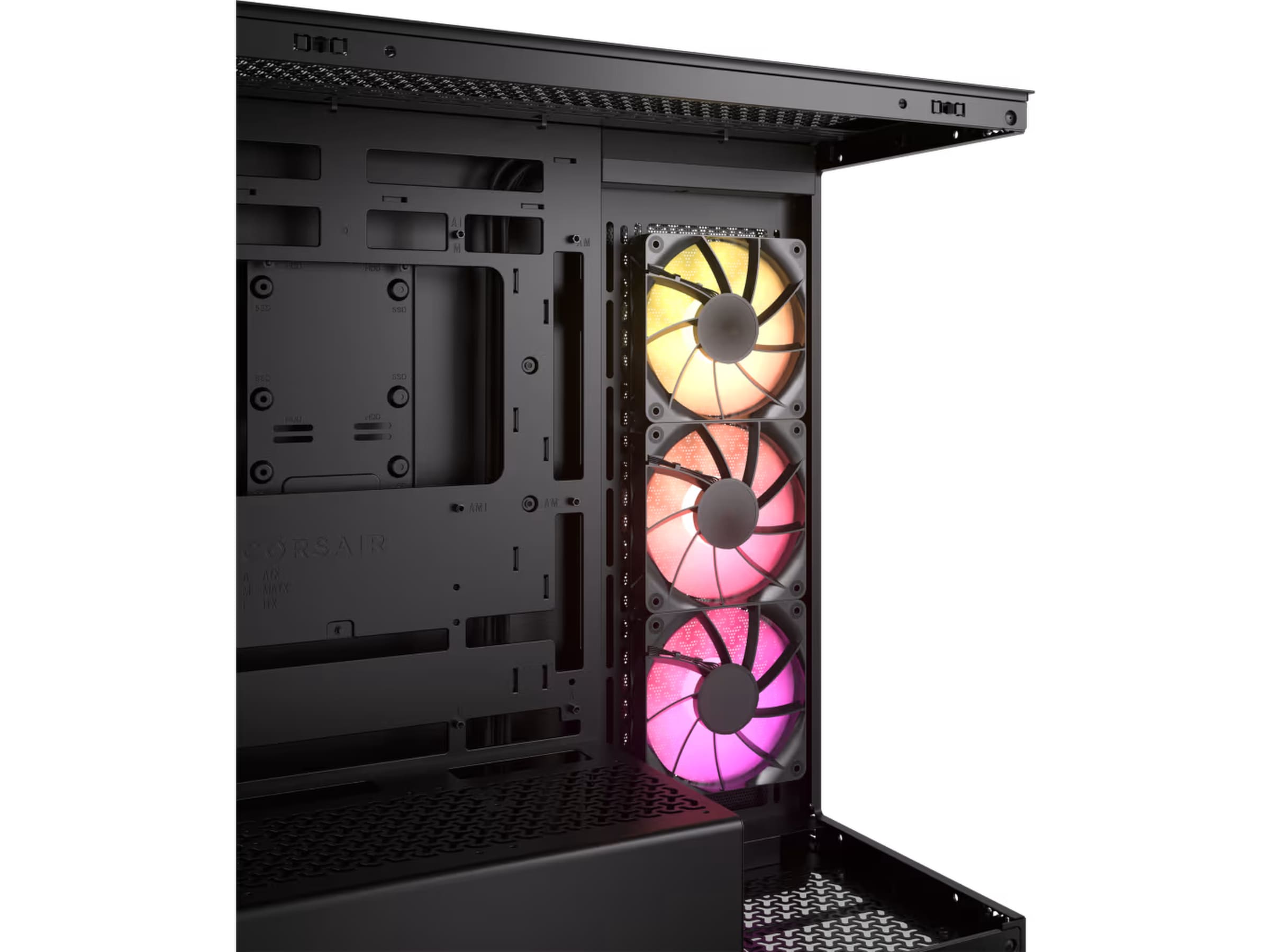 Stark kylning är avgörande för en modern PC, och 3500X utmärker sig med sido-, tak- och PSU-fläktfästen så att du kan täcka alla vinklar. Och med 360 mm radiatormonteringspunkter i sidan och taket har du gott om potential för vätskekylning.