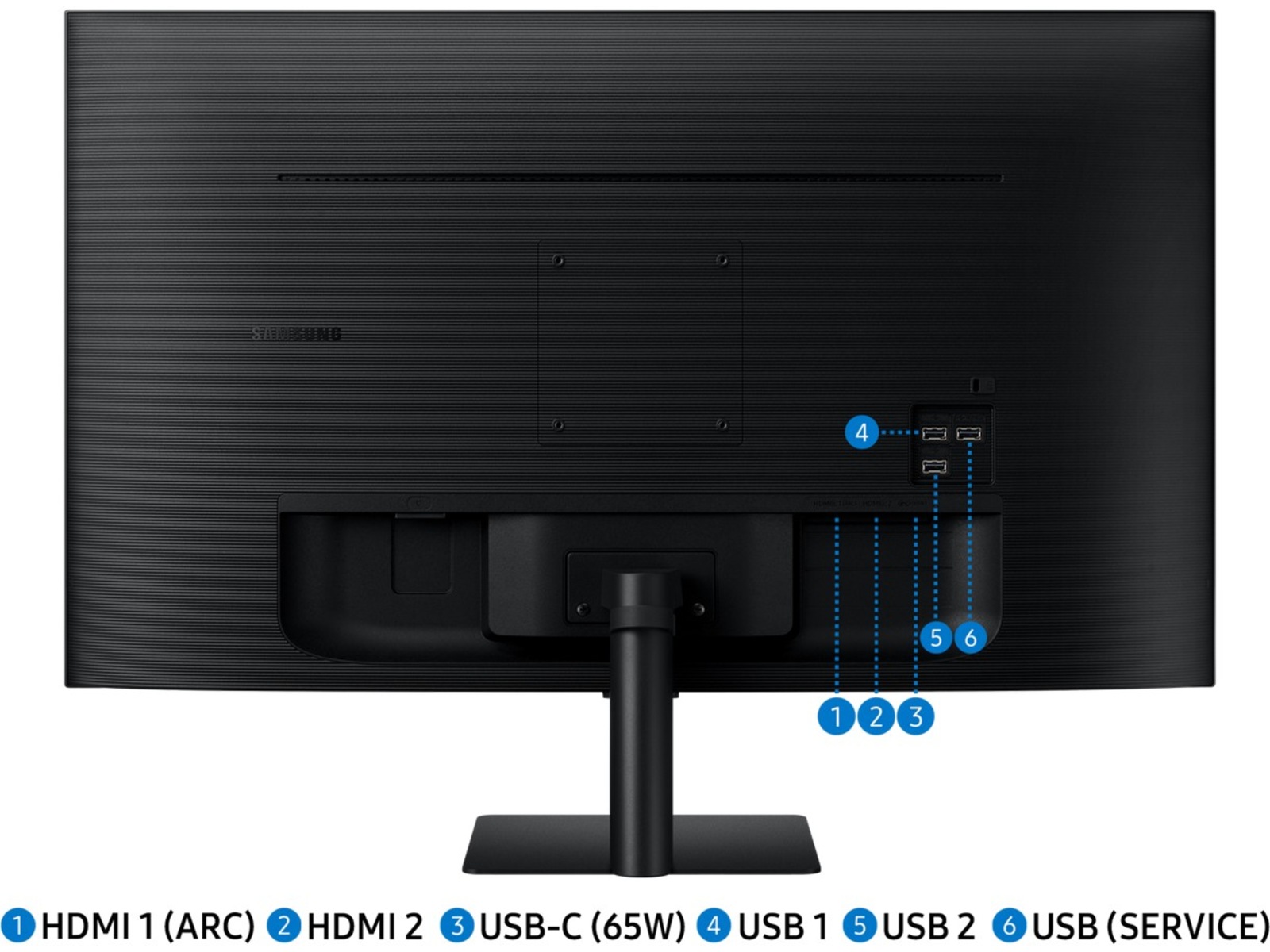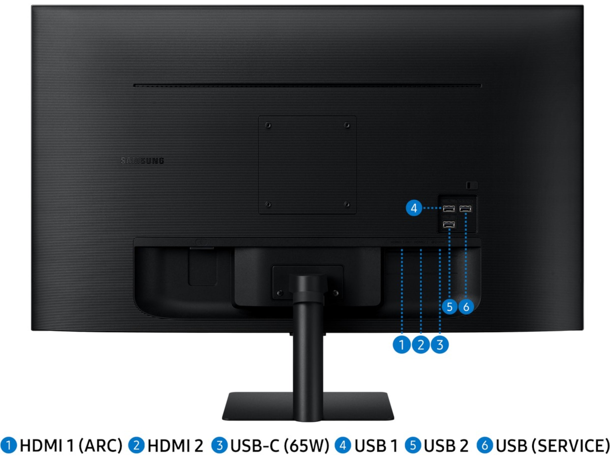 Med USB-C-, HDMI- och USB-A-portar kan du ansluta direkt till Smart Monitor utan några adaptrar. Ladda dina enheter, överför data och få ut det mesta av din multibildskärm – eller gör allt på en gång – tack vare de sex portarna.