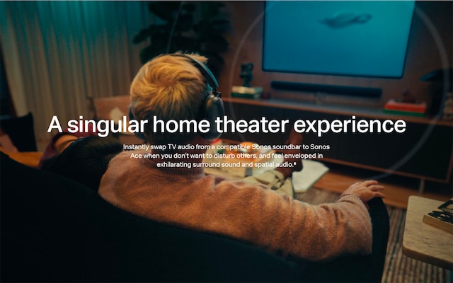 Flytta snabbt tv-ljudet från en kompatibel Sonossoundbar till Sonos Ace när du inte vill störa andra, och omslut dig med dramatiskt surroundljud och rymligt ljud.⁶