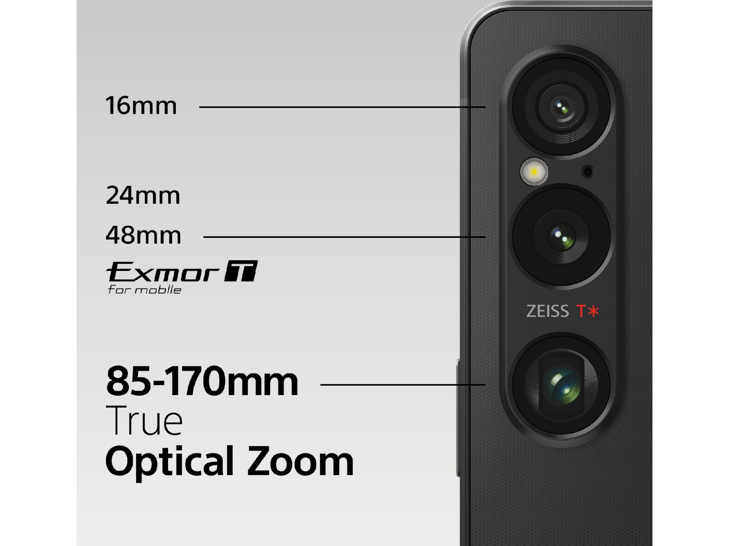 Det nya utökade 85-170 mm optiska teleobjektivet ger en äkta optisk zoom (3,5 till 7,1x motsvarande) för orörda bilder vid alla brännvidder. I kombination med optisk stabilisering och realtidsögon AF och spårning*2 är den här Sony-mobiltelefonen idealisk för porträtt.