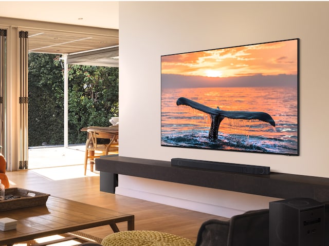 Neo QLED och Quantum Matrix Technology använder en Mini LED-ljuskällor för fantastisk precision i nyanser och kontraster. AI justerar även ditt innehåll för klara färger och djup kontrast, även på ljusa sommarkvällar.