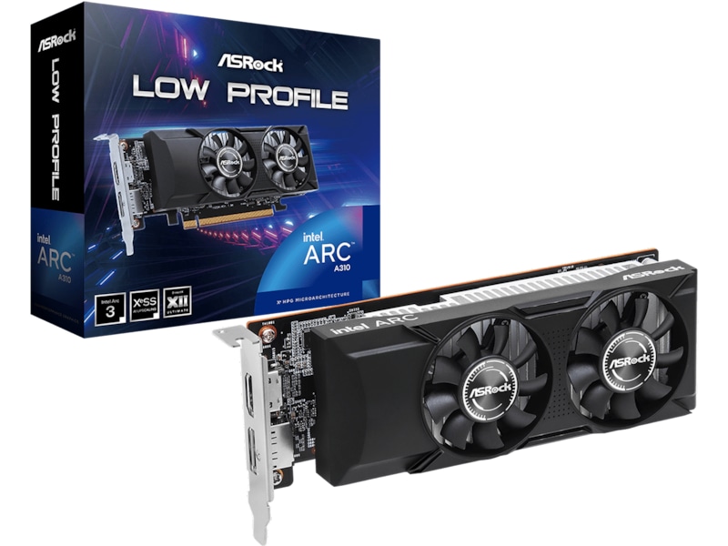 Egenskaper för videoadapter Intel Xe Super Sampling (XeSS), Glastextil-PCB med hög densitet, 0dB Technology, DrMOS, Nanovärmepasta, Dual Fan Design, AV1-maskinvarukodning, Matt svart PCB, Premium 100A Power Choke