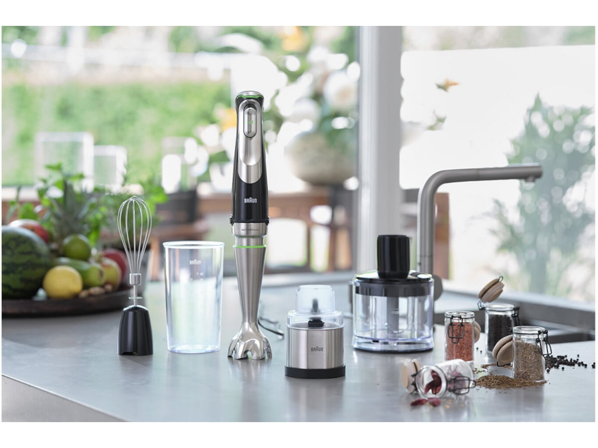 Kryddkvarnstillbehör, Handmixerfot i rostfritt stål, Visp i rostfritt stål, Hacktillsats (0,5 l), Rostfritt stålblad