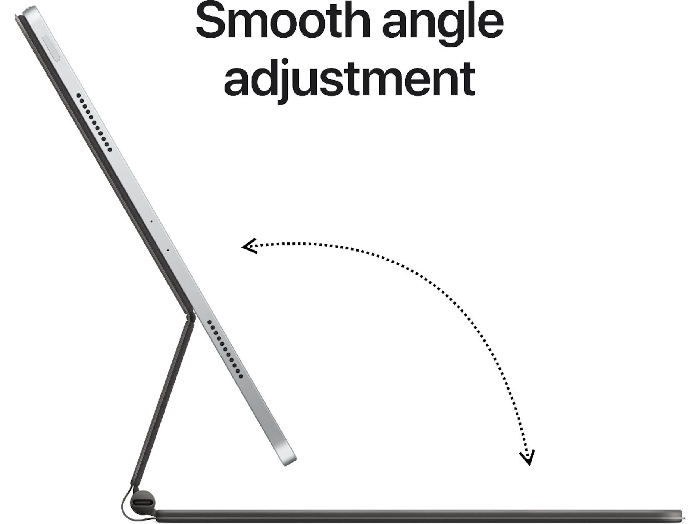 Magic Keyboard till iPad Pro ger dig en skön skrivkänsla i en ny slimmad, bärbar design med handledsstöd i aluminium och en styrplatta. Tangentbordet har en rad med 14 funktionstangenter för snabbåtkomst till skärmens ljusstyrka, volymreglage och andra funktioner samt en usb-c-port för genomströmsladdning. Den svävande designen gör det möjligt att justera lutningen steglöst.