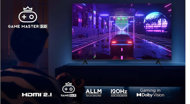 * Game Master 3.0 inklusive 120Hz spelaccelerator och spel i Dolby Vision finns endast på 85”-modellen. Game Master 2.0 tillgängligt på 43”, 50”, 55”, 58”, 65” och 75” modeller.