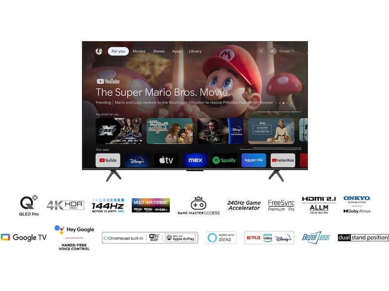 Google TV:s handsfree röstkontroller ger fullständig flexibilitet. Utan att lämna stolen kan du välja innehåll, starta appar, sätta på ditt set, byta ingång, söka efter filmer och mycket mer. Det är enkelt, användarvänligt och otroligt bekvämt.