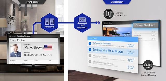 Samsungs innehållsplattform LYNK REACH 4.0 är kompatibel med befintliga LAN-, Wi-Fi- och koaxialinfrastrukturer, vilket centraliserar och effektiviserar det övergripande hotellunderhållet. Hotellchefer kan nu lösa problem på enskilda skärmar eller grupper av skärmar innan problemen eskalerar.