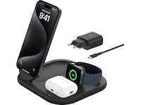 Ladda dina nödvändigheter med ett ultrabekvämt hopfällbart stativ. Den levererar 15W snabb trådlös laddning till din iPhone 16/15/14/13/12, 5W till din Apple Watch och 5W till dina AirPods. Med hjälp av Qi2-tekniken kan du placera din iPhone på laddningsplattan för en säker, magnetisk anslutning.