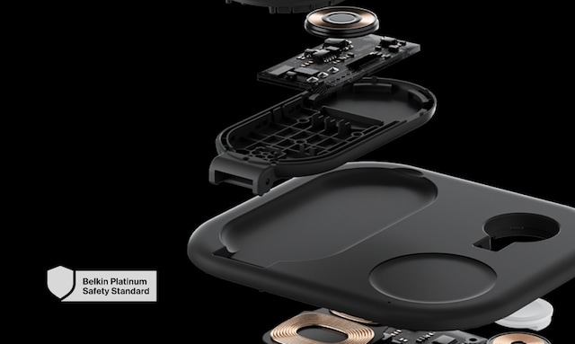 †Baserat på interna tester. Belkin Qi2 15W trådlös laddare laddar iPhone 15 från 0-50 % upp till 2x snabbare än en Qi 5W trådlös laddare och upp till 1,5x snabbare än en Qi 7,5W trådlös laddare. Laddningstiden varierar med miljöfaktorer; resultaten kan variera.