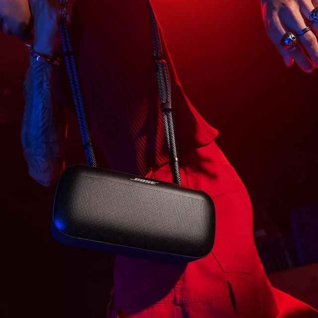 Kasta din SoundLink Max Portable Speaker över axeln och njut av bekvämligheten med hands-free-bärning.