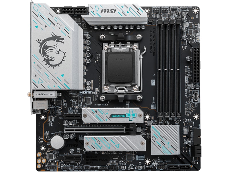 B650M GAMING PLUS WIFI är designad med massor av anslutningsmöjligheter, flexibla verktyg och bekväm Wi-Fi-lösning med DDR5-minnesversion för spelare som vill ha allt.