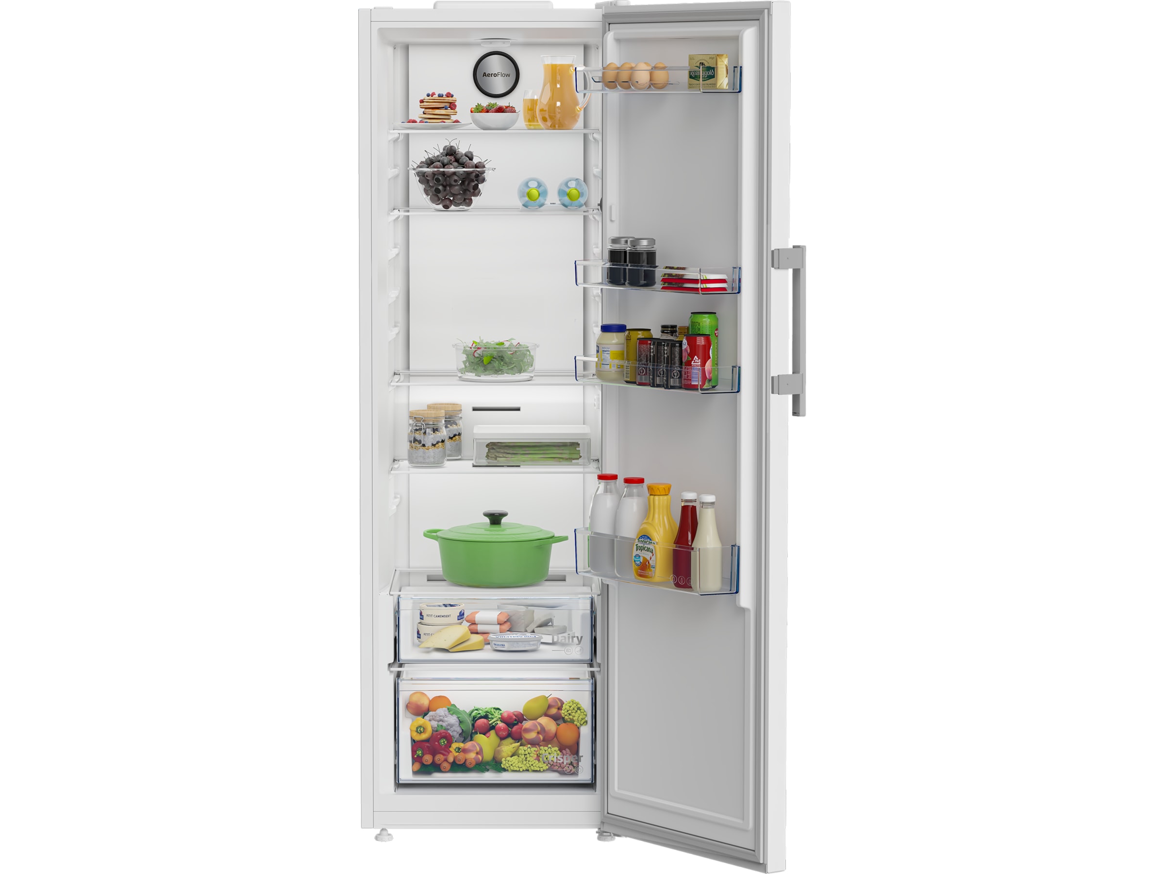 Detta kylskåp arbetar aktivt för att hålla maten fräsch längre och har vår beko AeroFlow-teknologi som minimerar temperaturfluktuationer inuti kylen för att bevara din mat upp till 30 % längre.