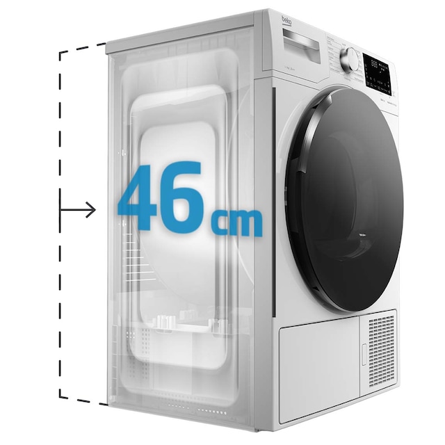 Denna torktumlare är endast 46cm djup och kommer därför att vara mycket praktisk i badrum eller tvättstugor där utrymmet är begränsat.