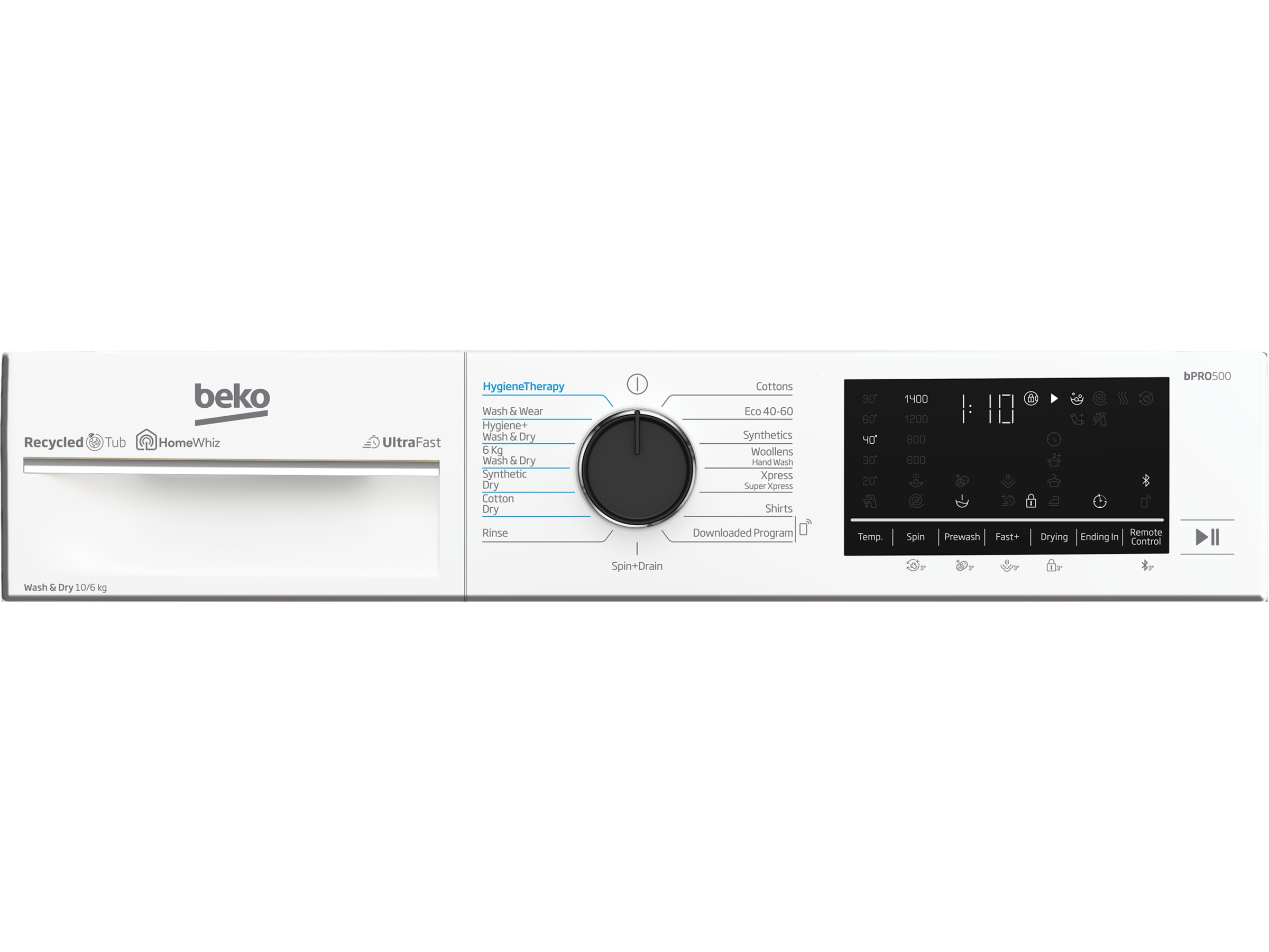 Beko UltraFast är ett riktigt snabbt program som kan tvätta och torka 6 kg kläder på bara 3 timmar och 33 minuter. Med hjälp av en förbättrad uppvärmning, en kraftfull fläkt och en specialdesignad värmeväxlare garanterar detta att du är redo på nolltid. Den klarar till och med att tvätta och torka en full last men ändå behålla energinivå A.