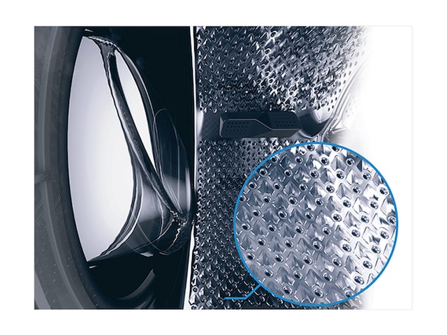 Tvätt och torkning kan slita ut kläderna med tiden. Därför har AquaWave®-systemet böjt dörrglas och specialgjorda spadar som rör tvätten som en våg i trumman. Detta ger en mer skonsam behandling av kläderna och förbättrar tvätt- och torkprocessen. Nästa gång någon tycker att du är snyggt klädd och du svarar: "Vad, denna gamla grej?", så talar du kanske sanning.
