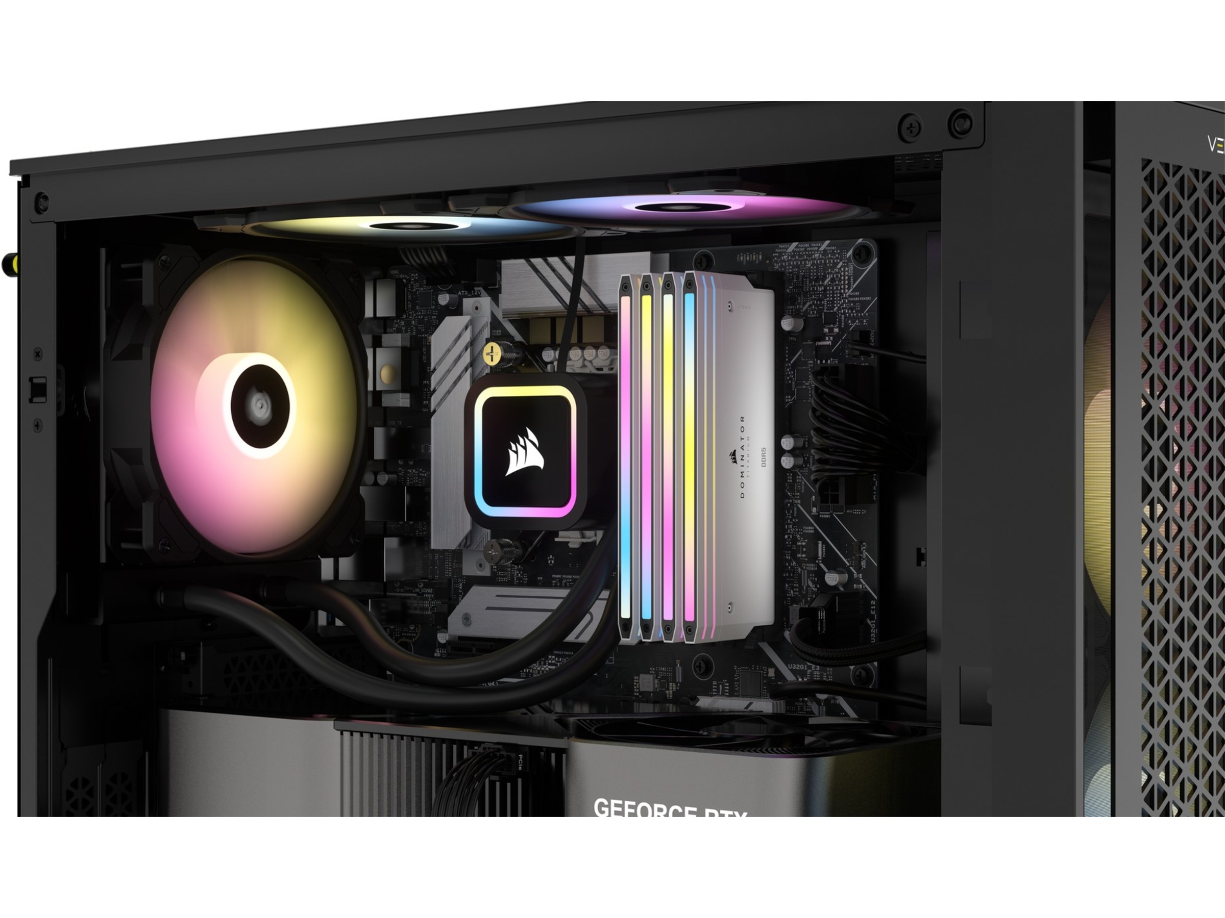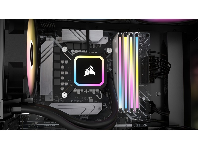 Power Management IC (PMIC) för extrem överklockning inbyggt, Corsair iCUE stöd, Anpassningsbar RGB-belysning, Dual-path Heat Xchange (DHX), Intel Extreme Memory Profiles (XMP 3.0), 11 RGB-belysningszoner