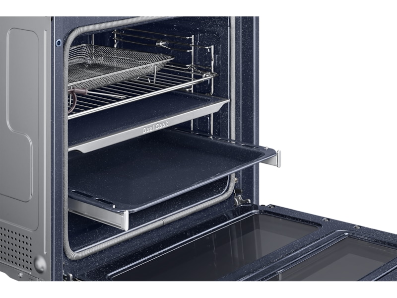 ångplåt, Temperatursond, Fyrkantigt rack, Ugnsdelare, 2 x fyrkantig bakplåt, Plåt för luftfritös, 1 nvå teleskophyllskenor |