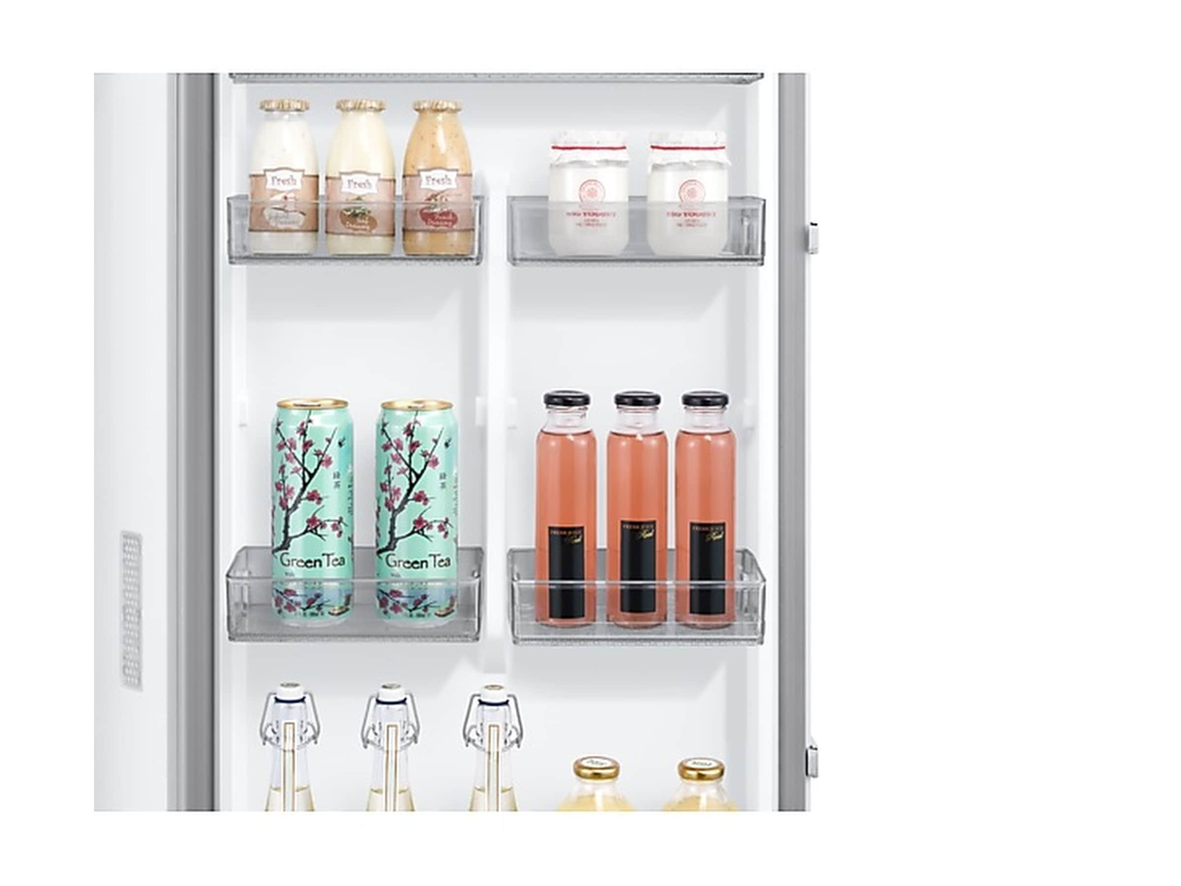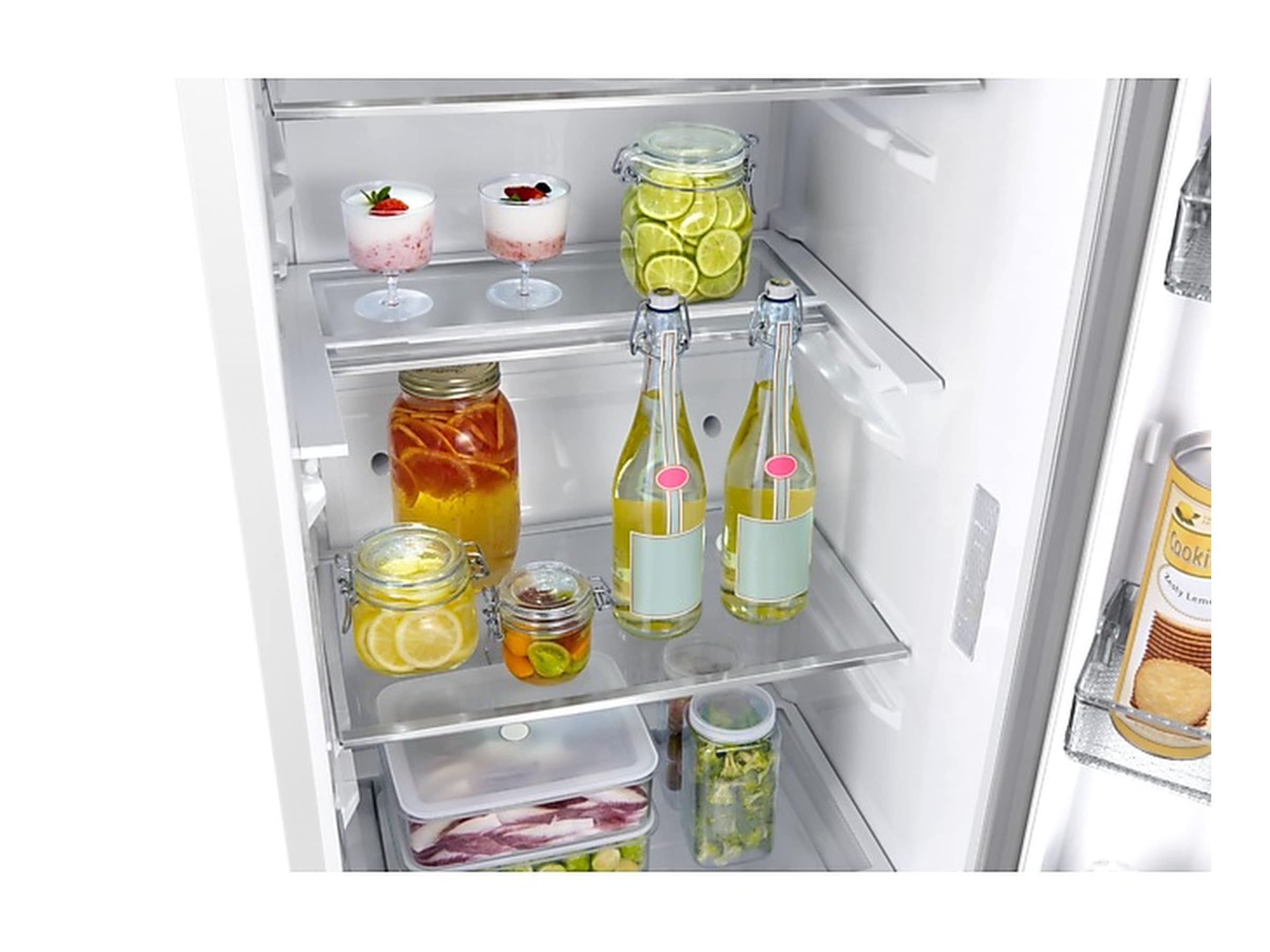2 x krisplåda - luftfuktighetsstyrd, Dörrhylla - justerbar, 1 x i lager - vikbar, 1 x flaskställ |