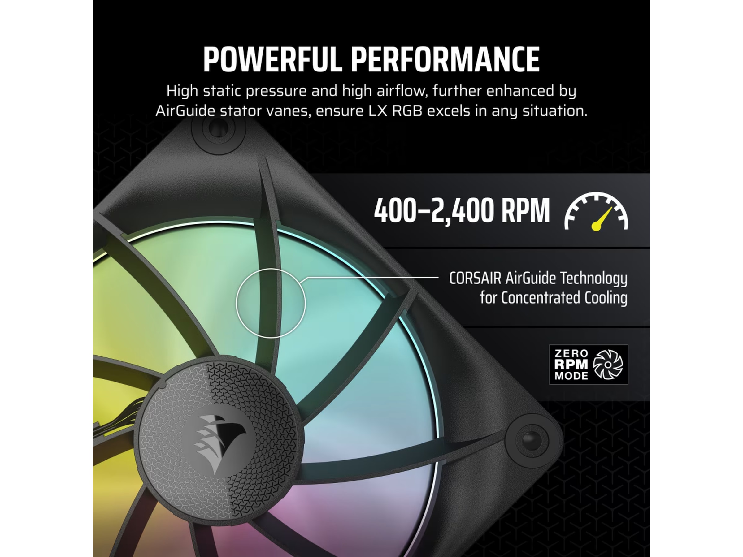 Egenskaper Zero RPM-fläktläge, Stöd för PVM (Pulse-width modulation), Adresserbar RGB, CORSAIR AirGuide-teknik