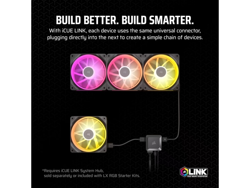 • Kräver iCUE LINK System Hub (ingår med LX RGB Starter Kit)
