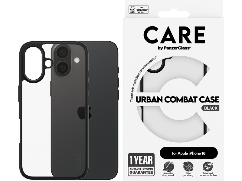 PanzerGlass CARE iPhone 16 Urban Combat skal (transparent)