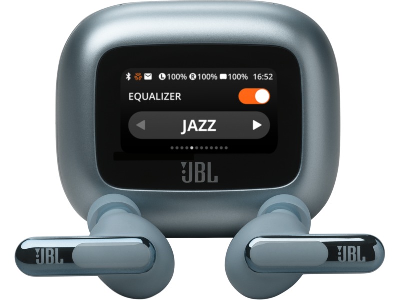 Du kan göra alla inställningar för dina JBL Live Beam 3 på den 1,45 tum stora pekskärmen på Smart Charging Case™. På displayen har du full kontroll över ljudet på alla enheter – bärbara datorer, TV, mobiltelefoner och surfplattor – utan att använda JBL-appen på mobilen.