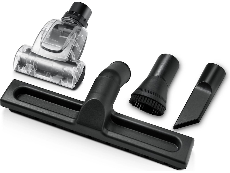 Utöver det vanliga golvmunstycket för alla typer av golv och mattor får du miniturboborste, dammmunstycke, spaltmunstycke och parkettmunstycke.