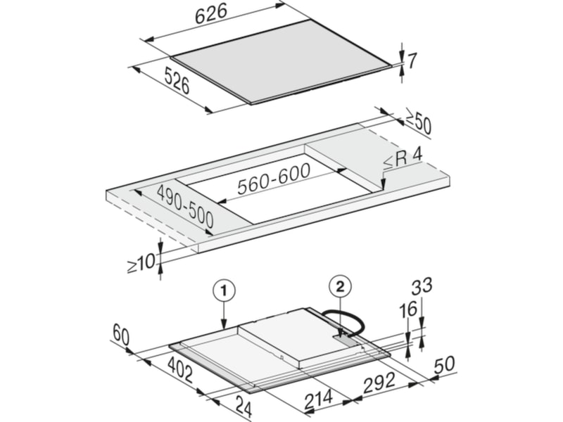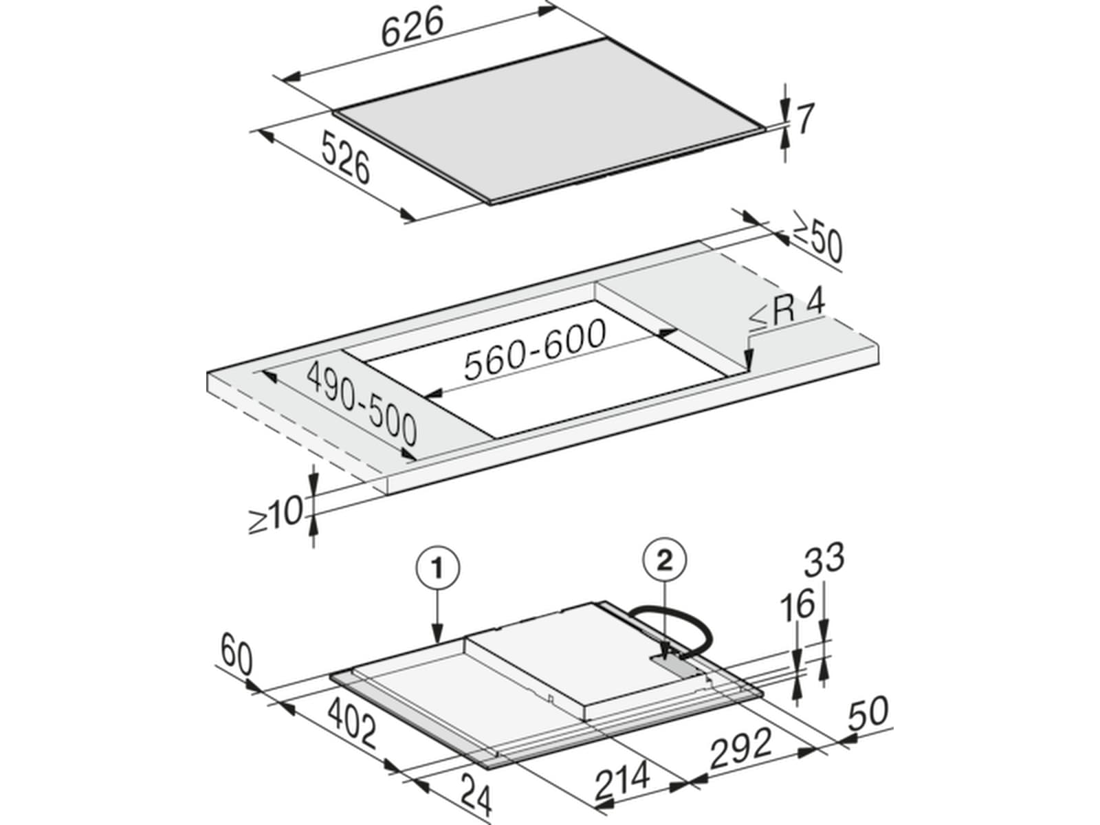 2 x induktionselement - förstärkare - 1400/2100 W - 190 mm, 1 x induktionselement - förstärkare - 2300/3000 W - 220 mm, 1 x induktionselement - förstärkare - 1350/1850 W - 160 mm |