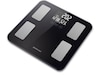 Med en slitstark yta i härdat glas tål den upp till 180 kg. Enkla tryckknappar och en stor LCD-skärm gör navigering och visning av mätvärden lätt. Vågen stöder upp till 12 användare och ger personliga mått och riktlinjer för varje användare. Perfekt för noggrann övervakning av kroppens hälsa.
