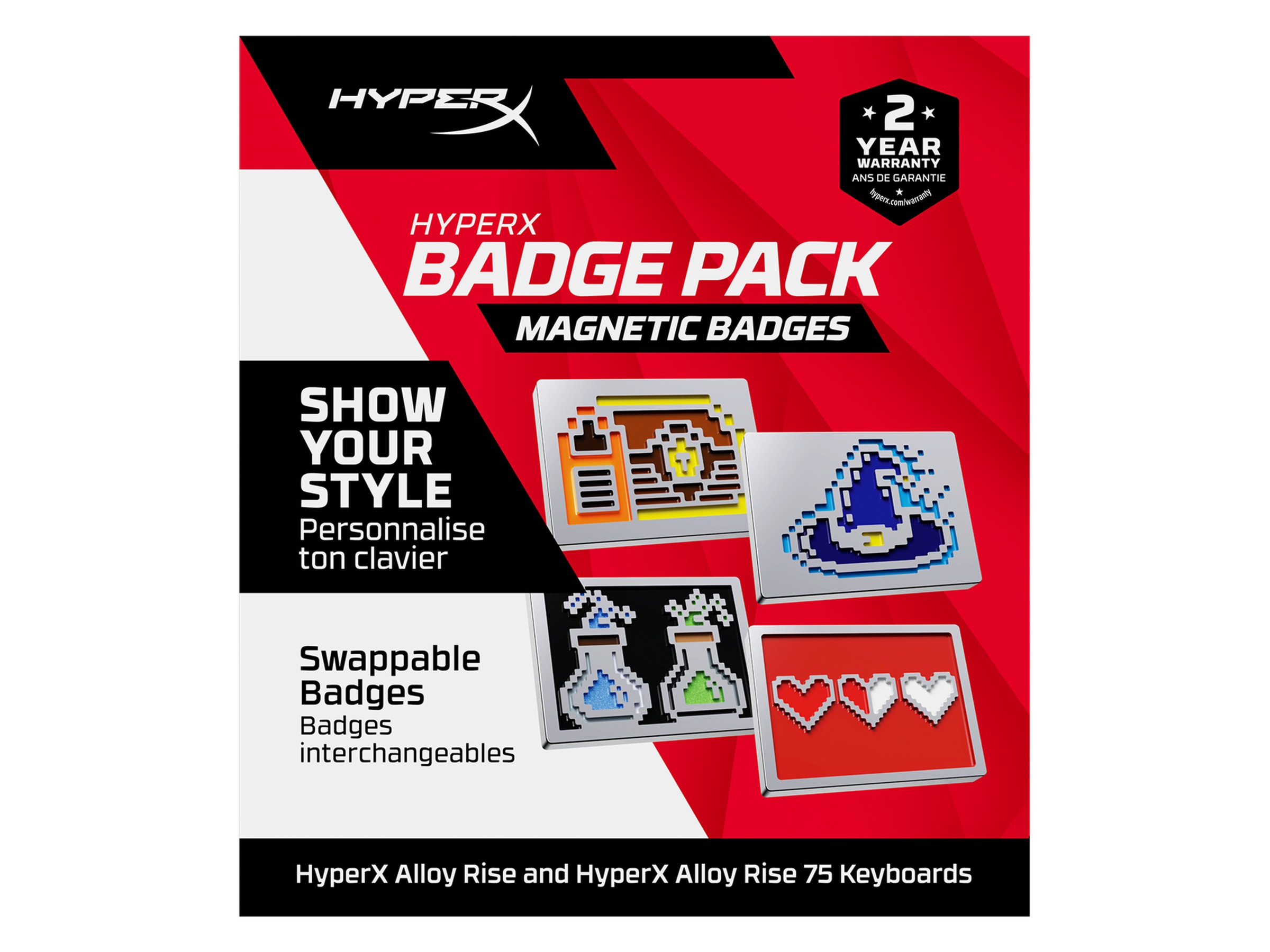 Letar du efter ett enkelt sätt att lägga till lite extra stil och anpassning till ditt tangentbord? Ett paket HyperX Magnetic Badges är det perfekta sättet att framhäva estetiken hos ditt HyperX Alloy Rise-tangentbord. HyperX Magnetic Badges är superenkla att applicera eller byta ut, och de är ett budgetvänligt sätt att subtilt uppdatera tangentbordets utseende och få ett leende på läpparna. Vart och ett av de 3 individuella temapaketen (söt, 8-bitars och abstrakt) innehåller 4 magnetiska, hårda emaljmärken.