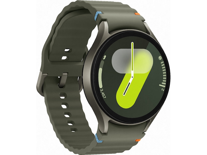 Lyft din stil med Galaxy Watch7, med en flytande glasdesign och färgglada sömmar. Finns i Small och Large med tre färgalternativ: Grönt, silver och kräm.