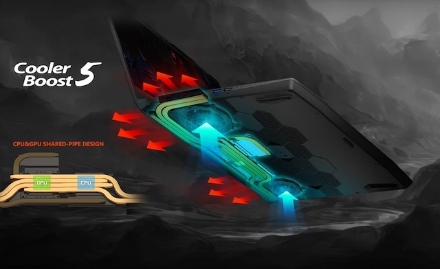 Särskilda värmelösningar för både CPU och GPU med upp till 2 fläktar och 6 värmerör. Ny CPU&GPU Shared-Pipe-design gör det möjligt att i realtid balansera värmeavledningen mellan CPU&GPU för bättre effektivitet. Tillsammans med MSI:s exklusiva termiska fett säkerställer du maximal prestanda under extrema spelförhållanden.