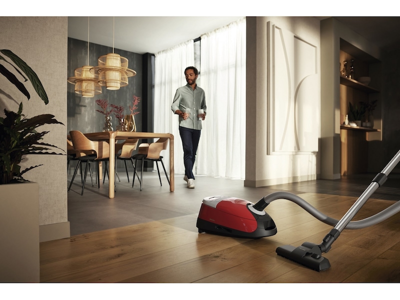 Golvdammsugare med effektiv motor för energibesparande dammsugning.