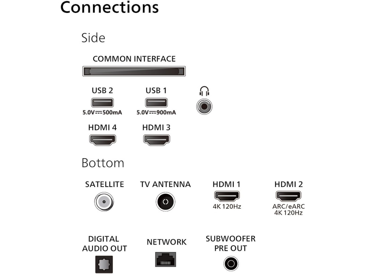 | Anslutningstyp | LAN - nedre del, Utgång för bashögtalare - nedre del, Hörlurar - sida, 3 x USB - sida, 2 x HDMI - sida, Digital ljudutgång (optisk) - nedre del, 2 x HDMI - nedre del |