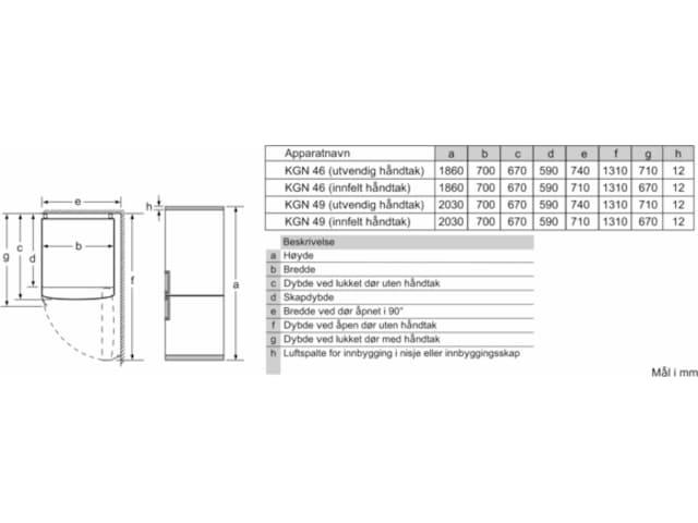 Placera ditt kylskåp där du vill ha det kan placeras alldeles intill väggar och andra möbler. Bredden på kombiskåpet motsvarar nischmått.