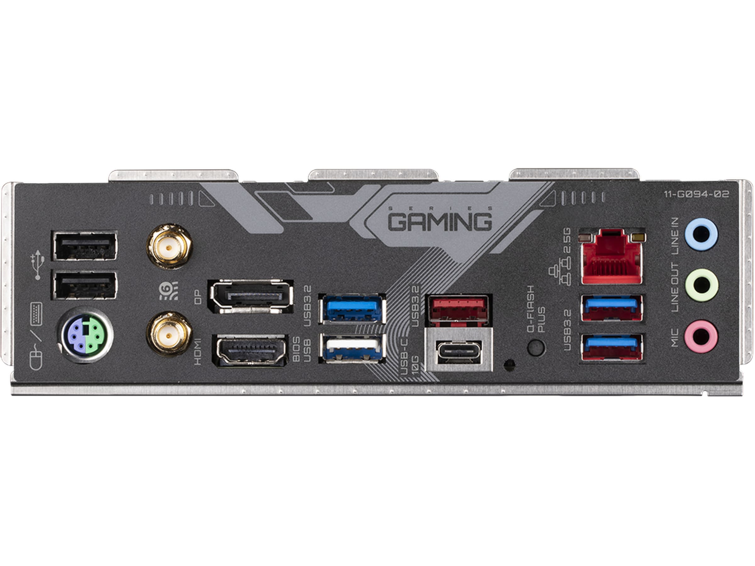 1 x USB-C 3.2 Gen 2, 3 x USB 2.0, 1 x DisplayPort, 3 x USB 3.2 Gen 1, 1 x ljudutgång - mini-jack, 1 x LAN (2.5Gigabit Ethernet), 1 x PS/2-tangentbord/mus, 1 x USB 3.2 Gen 2, 1 x HDMI, 1 x ljudingång - mini-jack, 2 x antenn, 1 x mikrofon - mini-jack