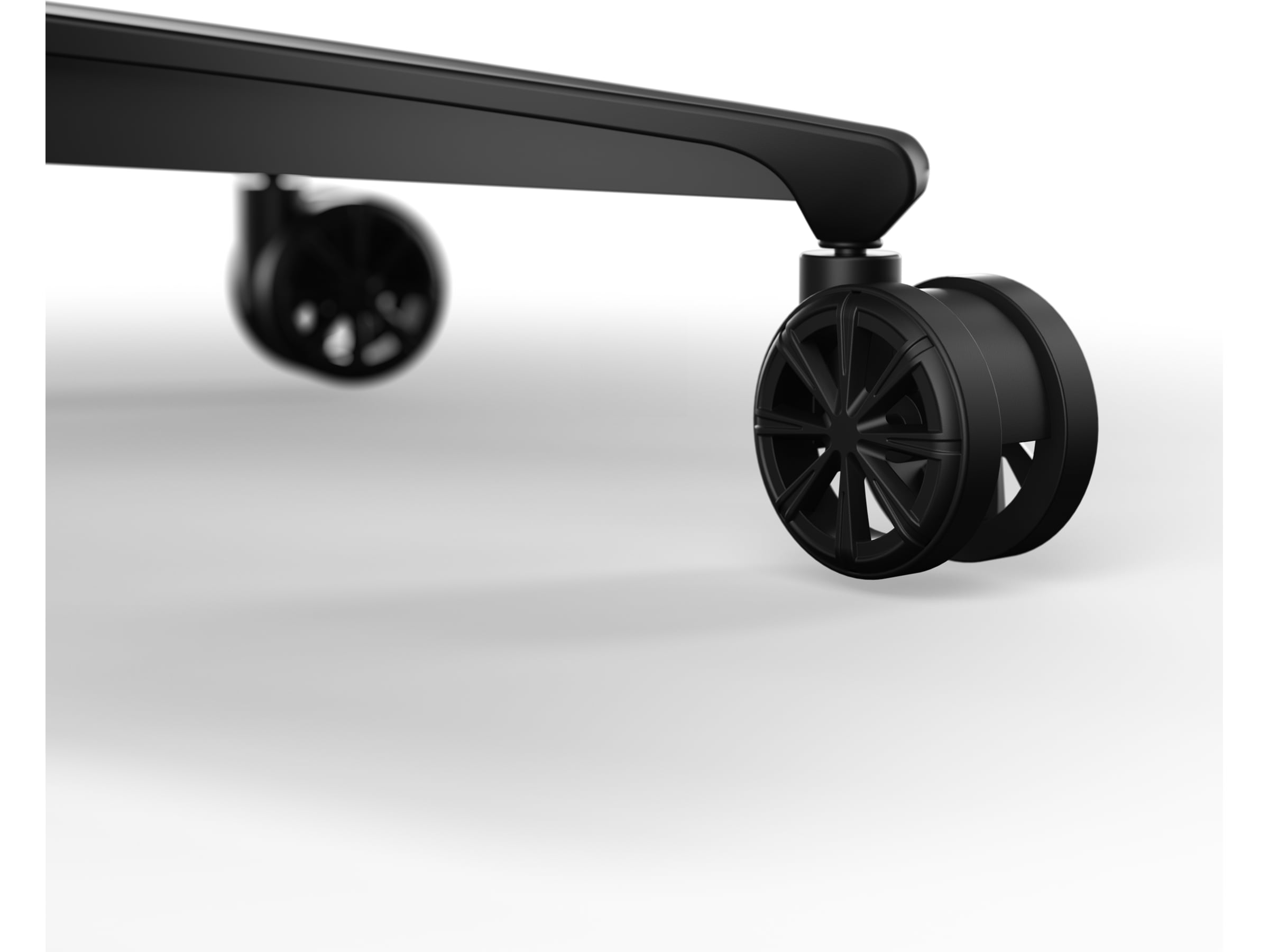 Ett lutande ryggstöd, som sträcker sig från upprätt 90 grader till tillbakalutat 160 grader, låter dig sömlöst övergå från intensivt fokus under arbete eller lek till välförtjänt vila och avkoppling. Stabila 65 mm dubbla PU-hjul erbjuder både stabilitet och rörlighet.